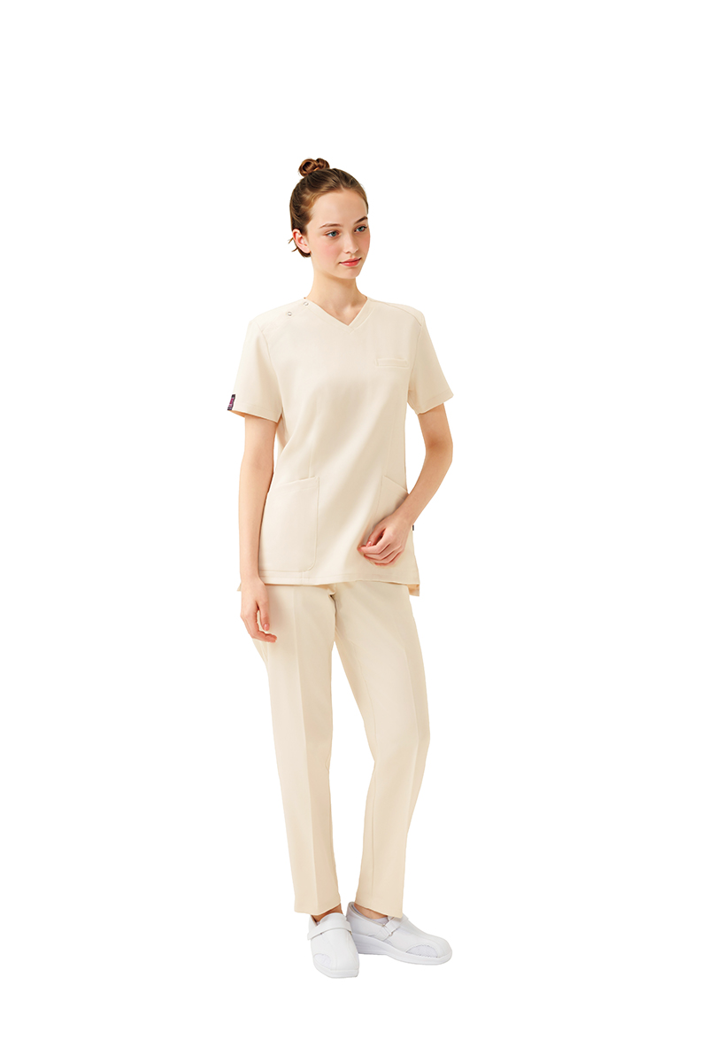 皆様、こんにちは。 いつもスクラブ通販専門店スクラブストアをご利用いただきまして、誠にありがとうございます。医療現場で働く皆さんにとって、スクラブはまさに「仕事着」そのもの。長時間着用し、動き回る医療従事者にとって、スクラブの着心地や機能性は非常に重要ですよね。特に、直接肌に触れる「生地」は、快適性や衛生面、耐久性を大きく左右する要素です。今回は、医療用スクラブに一般的に使用されている生地の種類について、それぞれの特徴とともに詳しくご紹介します。スクラブ選びの参考に、ぜひ最後までお読みください!1. ポプリン(Poplin)最も一般的なスクラブ生地の一つが「ポプリン」です。 平織りのため、表面が滑らかで光沢があり、適度なハリがあります。通気性が良く、比較的軽量で動きやすいのが特徴です。シワになりにくい加工が施されているものも多く、お手入れも比較的簡単です。コストパフォーマンスに優れており、幅広いデザインのスクラブに採用されています。注意点としては、吸水性は良いものの、速乾性では他の素材に劣る場合があります。【オススメ商品】7000SC スクラブ7000SC スクラブ 男女兼用 FOLK PANTONEこのスクラブの最大の魅力は、その「スクラブポプリン」という特別な生地にあります。ポリエステルと綿を絶妙なバランスで混紡することで、ポプリンならではのサラリとした滑らかな肌触りを実現。まるで、お気に入りのダンガリーシャツを着ているかのような、肌馴染みの良い感触を一日中味わえます。さらに、洗濯を繰り返すほどに生地の風合いが増していくので、着るたびにあなたの体に馴染み、より愛着が湧くことでしょう。7000SCは、ただ肌触りが良いだけではありません。医療現場での激しい動きを徹底的に分析し、日本人の体型に合わせた安心設計が施されています。前かがみになっても胸元が開きすぎず、腕を高く上げても脇が見えにくいなど、細部にまで配慮が行き届いているため、どんな体勢でも気にせず業務に集中できます。そして、医療従事者の心を掴むのが、PANTONEとのコラボレーションによる豊富なカラーバリエーションです。定番色から、医療現場に明るさをもたらす鮮やかなカラーまで、幅広い選択肢の中から、ご自身の気分やチームのイメージにぴったりの一着を見つけることができます。イージーケア仕様なので、洗濯後の乾きも早く、アイロンがけの手間も最小限に抑えられるのも嬉しいポイントです。医療現場のプロフェッショナルが求める機能性と、長く愛用できる快適な着心地。その両方を兼ね備えたフォーク 7000SC スクラブは、まさに「医療現場の当たり前」を支える、あなたの最高のパートナーとなるはずです。2. ツイル(Twill)ジーンズなどにも使われる「ツイル」も、スクラブによく用いられる生地です。斜めに走る織り目が特徴で、ポプリンに比べて厚手で丈夫です。耐久性が高く、繰り返し洗濯しても形崩れしにくい傾向があります。また、しなやかでドレープ性があり、身体に馴染みやすい着心地です。耐久性と着心地のバランスが良く、幅広い医療現場で選ばれています。注意点としては、ポプリンに比べて通気性がやや劣る場合があります。【オススメ商品】7023SCP スクラブ7023SCP ZiP SCRUBこのスクラブの最大の特長は、フォークが自信を持ってお届けする新素材、「PREMIUMシャンブレーツイル」にあります。ツイル生地ならではのしっかりとした丈夫さはそのままに、見る角度によって表情を変える深みのある色合いが、ワンランク上の上品さを醸し出します。まるで上質なシャツを羽織っているかのような、ドライでさらりとした肌触りは、一日中着用していてもべたつきにくく、常に快適な状態を保ちます。適度なハリとコシが、体のラインを美しく見せ、プロフェッショナルとしての品格を演出してくれるでしょう。そして、多くの医療従事者から絶大な支持を得ているジップアップデザインも、このスクラブの大きな魅力です。頭からかぶる必要がなく、サッと羽織ってフロントファスナーを閉めるだけで着脱が完了。慌ただしい休憩時間や、急な呼び出しにもスムーズに対応でき、ストレスフリーな一日をサポートします。さらに、7023SCPはデザイン性だけでなく、現場の声に応える優れた機能性も兼ね備えています。タブレットも収納できる大容量ポケットや、タオルや小物を掛けるのに便利な脇ループなど、細部までこだわり抜いたディテールが、あなたの業務を力強くアシストします。吸汗速乾性や制電加工はもちろん、ノーアイロンで着用できるイージーケア性も兼ね備えているため、日々の手入れも非常に簡単です。デザインの美しさと、医療現場で求められる機能性を高次元で両立させたフォーク 7023SCP ジップスクラブ。まさに、「快適さ」と「スタイリッシュさ」を諦めたくないあなたにぴったりの一着です。ぜひ、PREMIUMシャンブレーツイルの極上の着心地と、洗練されたデザインがもたら