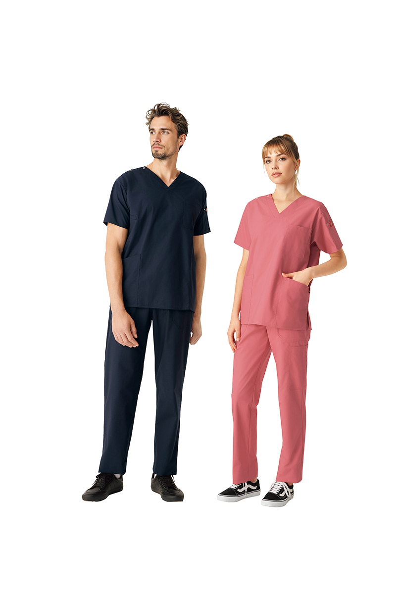 皆様、こんにちは。 いつもスクラブ通販専門店スクラブストアをご利用いただきまして、誠にありがとうございます。医療現場で日々着用するスクラブは、清潔さを保つために工業洗濯が欠かせません。しかし、「スクラブがすぐに傷んでしまう」とお悩みの方もいるのではないでしょうか? 工業洗濯は、高い洗浄力と殺菌効果を持つ一方で、生地への負担も大きくなりがちです。そこで今回は、医療用スクラブを長持ちさせるための工業洗濯でのポイントをご紹介します。日々のケアを見直して、お気に入りのスクラブを快適に使い続けましょう!なぜ工業洗濯でスクラブは傷みやすいのか?工業洗濯は、多数の衣類を一度に、高温かつ強力な洗剤を使用して洗浄・乾燥するため、家庭での洗濯よりも生地に大きな負荷がかかります。まず、血液や体液などの頑固な汚れを落とすために、アルカリ性の強い洗剤が使用されることがあり、これにより生地の色落ちや繊維の劣化が早まる可能性があります。次に、殺菌・消毒のため、高い水温での洗浄や高温での乾燥が行われますが、熱は繊維を収縮させたり、弱らせたりする原因になります。さらに、大型の洗濯機や乾燥機では、衣類同士の摩擦や機械内部との接触が頻繁に起こり、生地が擦り切れることも少なくありません。スクラブを長持ちさせるための対策これらの特性を踏まえ、スクラブを長持ちさせるためには以下の点に注意しましょう。1. スクラブの素材選びが重要!購入時に最も考慮すべき点の一つが素材です。工業洗濯に耐えうる丈夫な素材を選ぶことが大切です。特に、綿100%の素材よりも、ポリエステルなどの合成繊維が混紡されているスクラブは、シワになりにくく、耐久性にも優れているため、工業洗濯に適しています。速乾性も高く、衛生的で、おすすめです。また、耐久撥水加工や防汚加工が施されたスクラブは、汚れが付きにくく落ちやすいため、より優しい洗浄で済み、生地への負担を軽減できます。【オススメのスクラブはこちら!】7061SC Dickies 男女兼用スクラブ7061SC FOLK Dickies スクラブ 男女兼用このスクラブの最大の魅力は、高機能素材「イリアス」を採用している点にあります。ポリエステル100%でありながら、コットンのような優しい肌触りを実現し、吸汗速乾性にも優れているため、長時間の着用でもサラリとした快適さが持続します。さらに特筆すべきは、その工業洗濯への対応力です。医療現場の厳しい衛生基準を満たすための高温洗浄や強力な乾燥にも耐えうるよう設計されており、繰り返し洗濯しても型崩れや色落ちが非常に少ないのが特徴です。これにより、スクラブの買い替えサイクルを延ばし、コスト削減にも貢献します。デザイン面では、医療現場でのあらゆる動きを妨げない優れたストレッチ性も兼ね備えています。前かがみになる動作や腕を伸ばす動きなど、激しい動きにもストレスなく対応し、スムーズな作業をサポートします。豊富なカラーバリエーションも魅力の一つで、施設のユニフォーム規定や個人の好みに合わせて選びやすいのも嬉しいポイント。また、衛生面を考慮した制菌加工が施されているため、安心して着用いただけます。7061SCスクラブは、まさに医療現場のプロフェッショナルが求める機能と耐久性を高次元で両立しています。2. 事前処理で汚れを定着させない汚れたスクラブを放置すると、汚れが繊維の奥深くに定着し、強力な洗浄が必要になります。そのため、血液や薬品などが付着した場合は、できるだけ早く水で軽く洗い流すか、専用のシミ抜き剤で前処理を行いましょう。特に汚れがひどい場合は、洗濯機に入れる前に軽く手洗いするだけでも、洗浄時の負担を大きく軽減できます。3. 洗濯ネットの活用小さなひと手間ですが、洗濯ネットを使用することで、スクラブへのダメージを大きく減らすことができます。洗濯ネットに入れることで、他の衣類との絡まりや摩擦を防ぎ、生地の毛羽立ちや傷みを抑制できます。特にポケットや襟元など、型崩れしやすい部分を守る効果もありますよ。4. 洗濯表示の確認と遵守スクラブに付いている洗濯表示は、その衣類の最適なケア方法を示しています。多くの医療用スクラブには、業務用洗濯に対応していることを示すマークが付いているので、このマークがある製品を選ぶと安心です。洗濯表示に記載されている水温や乾燥方法などの指示には必ず従いましょう。これにより、生地への不要なダメージを防げます。5. 洗濯担当者との連携もし可能であれば、洗濯業者や院内の洗濯担当者とコミュニケーションを取ることも大切です。使用しているスクラブの素材や特性を伝え、適切な洗濯方法について相談してみましょう。大量の洗濯物の中に個人のスクラブが混ざる場合でも、もし可能であれば、より優しいコースでの洗濯や、特定の洗剤の使用について相談できるかもしれません。最後に…いかがでしたしょうか。医療現場で働く皆さんの大切な